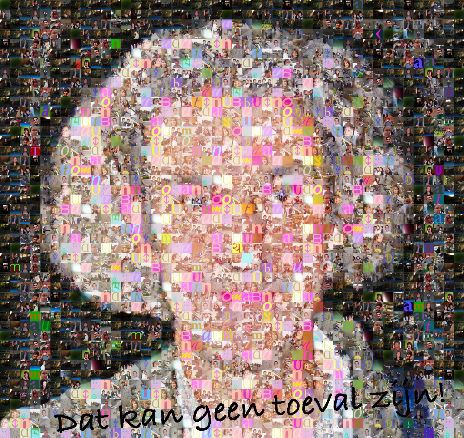 Geschenk van de “Boutman Students”: een reuzeposter van 1mx1m samengesteld uit honderden minifoto’s van onze tijd tezamen, met het motto: “Dat kan geen toeval zijn!”: